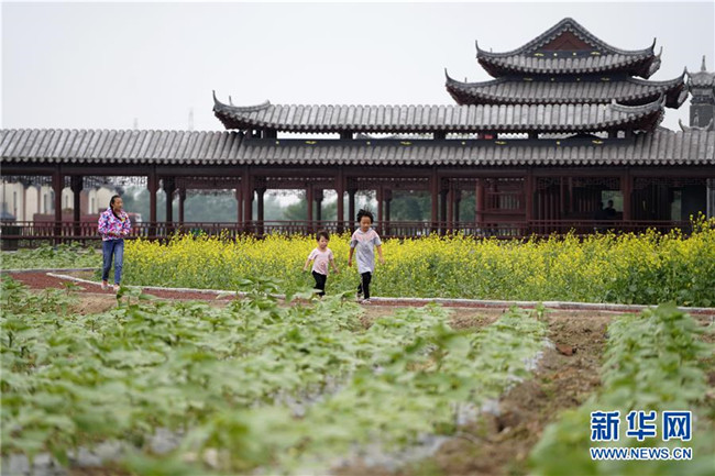 8月5日,小朋友們?cè)诤颖笔埍笨h德勝村玩耍。新華社記者 邢廣利 攝