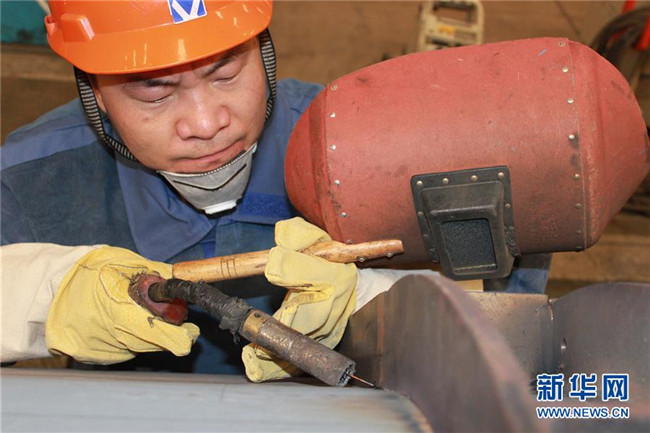 徐工集團(tuán)電焊高級(jí)技師張懷紅在工作(2016年8月2日攝)。 新華社發(fā)