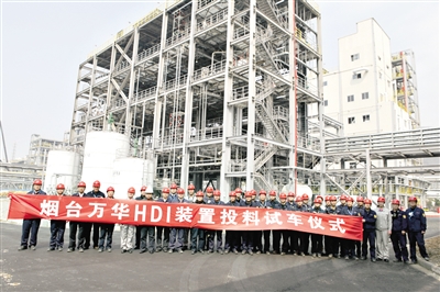 萬華化學(xué)HDI(特種異氰酸酯的一種)裝置投料試車成功。資料照片