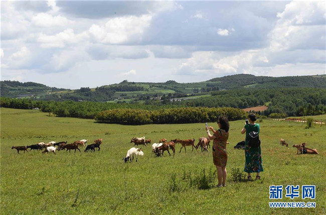 8月10日,游人在云南尋甸北大營草場(chǎng)拍照。 新華社記者楊宗友攝