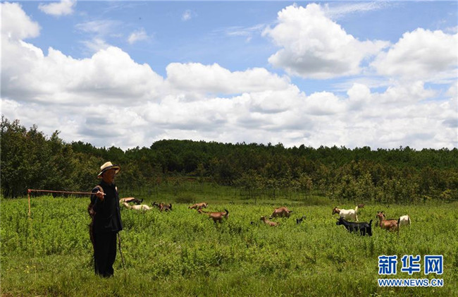 8月10日,一位老人在云南尋甸北大營草場(chǎng)放牧。 新華社記者楊宗友攝