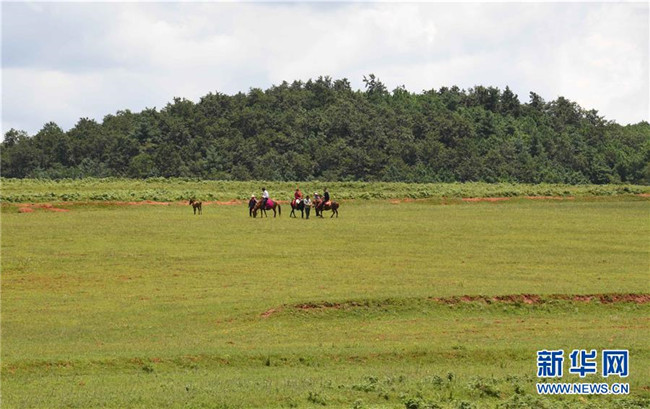 8月10日,游人在云南尋甸北大營草場(chǎng)騎馬。 新華社記者楊宗友攝