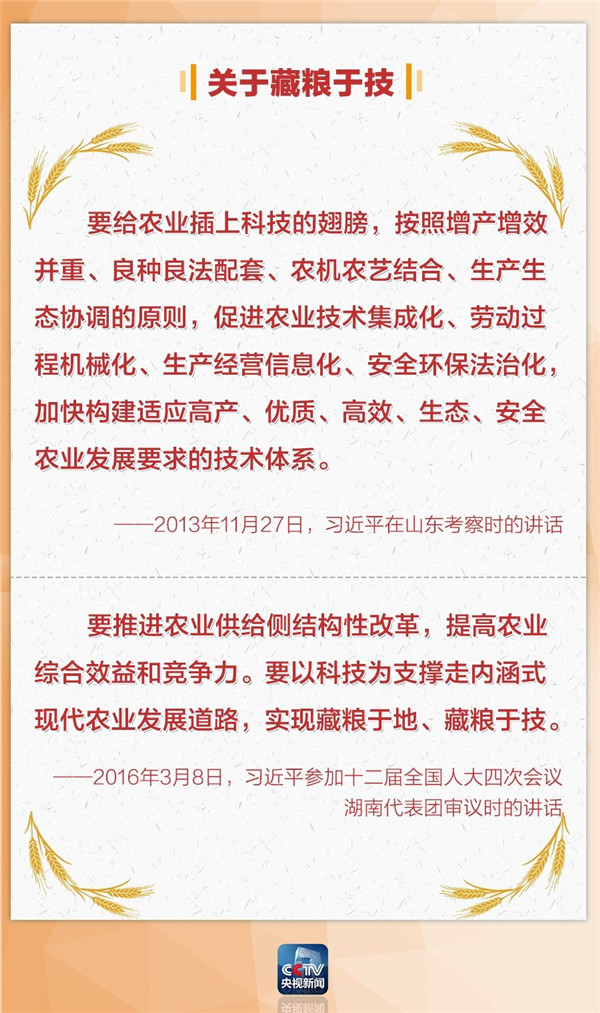 2013年11月,習(xí)近平在山東農(nóng)科院召開(kāi)座談會(huì)時(shí)表示,手中有糧,心中不慌。保障糧食安全對(duì)中國(guó)來(lái)說(shuō)是永恒的課題,任何時(shí)候都不能放松。