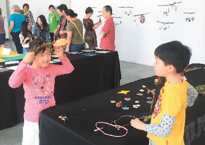 吳靜好和弟弟金羿安(右)在參觀社區(qū)美術營作品展