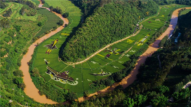 云南省昆明市宜良縣著力打造創(chuàng)意農(nóng)業(yè)、景觀農(nóng)業(yè)、實(shí)現(xiàn)“以農(nóng)帶旅、以旅興農(nóng)”的產(chǎn)業(yè)發(fā)展,其中種植的數(shù)百畝彩色稻田,在田間繪制了各類(lèi)美麗畫(huà)卷,吸引眾多游客前來(lái)觀光。 新華社記者 秦晴 攝