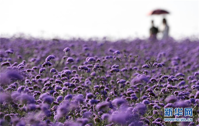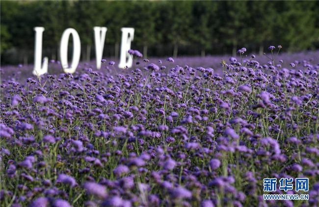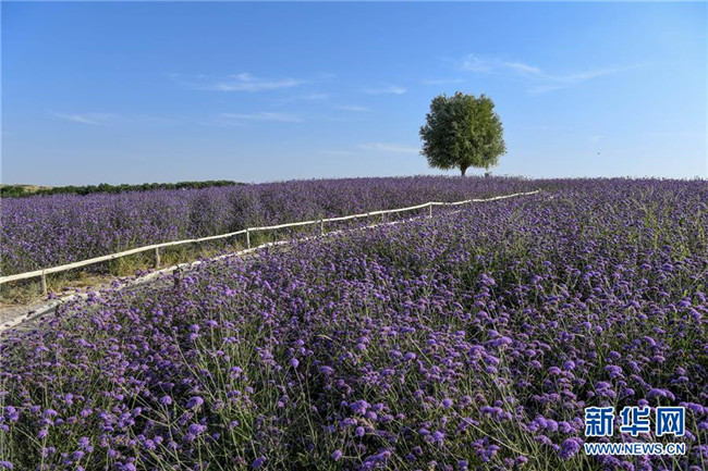 寧夏艾伊薰衣草生態(tài)基地內(nèi)大片馬鞭草競(jìng)相開放(8月17日拍攝)。