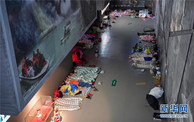 8月21日,汶川縣映秀鎮(zhèn)部分受暴雨災(zāi)害影響的群眾被安置在汶川特大地震震中紀念館。新華社記者 張超群 攝