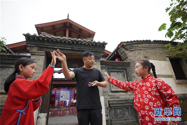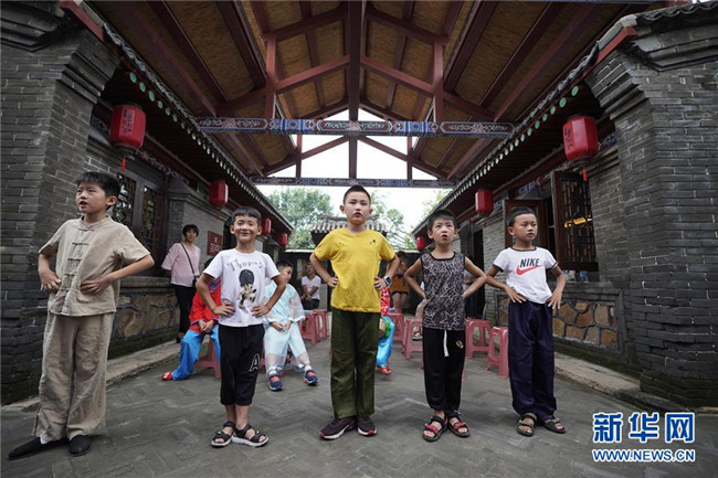 8月20日,孩子們?cè)诤颖笔∏鼗蕧u市北戴河“裴艷玲藝術(shù)傳承基地”學(xué)習(xí)表演京劇。