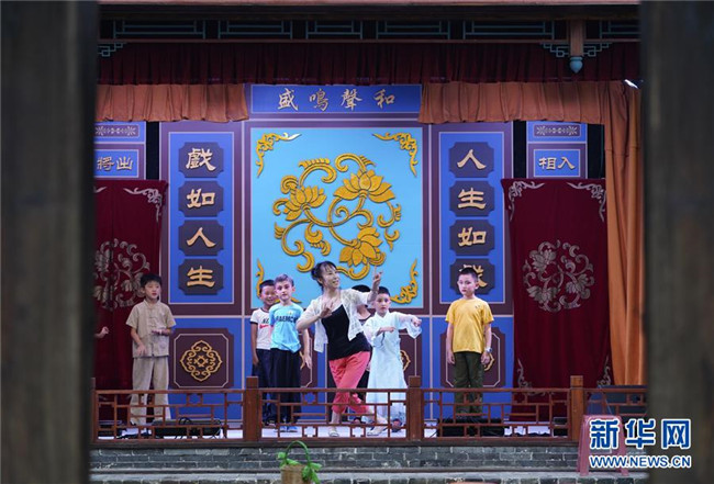 暑假期間,河北省秦皇島市北戴河“裴艷玲藝術(shù)傳承基地”——梨園小院開設(shè)京劇培訓(xùn)班,免費(fèi)教授孩子們京劇表演藝術(shù),同時(shí)借助基地平臺(tái)為中外游客演出,鍛煉孩子們的表演技能,傳承戲曲藝術(shù)。 新華社記者 邢廣利 攝