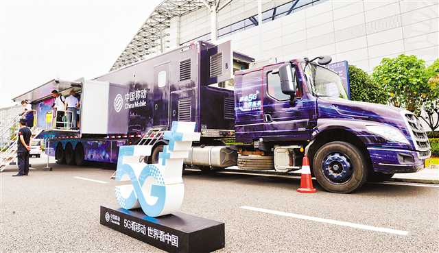 8月14日,在重慶國際博覽中心,重慶移動“5G巡洋艦”??吭诖恕_@是全市首輛大型5G應(yīng)用開放體驗展示車,市民可零距離感受5G在教育、旅游、工業(yè)、娛樂領(lǐng)域的廣泛應(yīng)用。