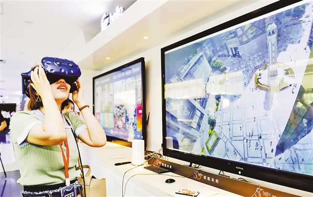 8月15日,在中國電信重慶公司,體驗者頭戴VR設(shè)備,觀看解放碑的實時全景。在未來,5GVR將會在智慧旅游、遠程教育、遠程會議等多領(lǐng)域應(yīng)用。(本組圖片均由記者張錦輝攝)