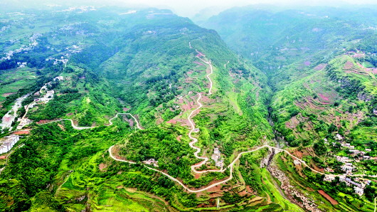 航拍大方縣對(duì)江鎮(zhèn)營(yíng)興村通組公路?!≈苡?xùn)貴 攝