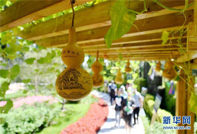 8月25日,游客在北京世園會甘肅園內(nèi)游覽。新華社記者張晨霖攝