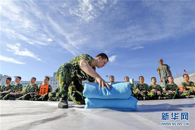 8月25日,河北省遵化市第一中學(xué)學(xué)生進(jìn)行內(nèi)務(wù)整理訓(xùn)練。新華社記者 牟宇 攝