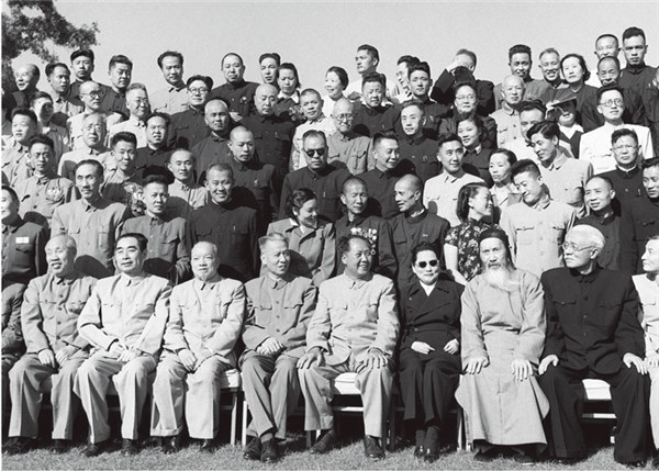 中華人民共和國第一屆全國人民代表大會第一次會議全體代表于1954年9月21日合影。 毛澤東主席和代表們在一起。前排左起:董必武、周恩來、李濟(jì)深、劉少奇、毛澤東、宋慶齡、張瀾、林伯渠。 新華社稿 侯波/攝