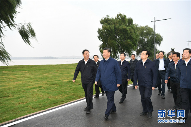 9月18日上午,中共中央總書記、國家主席、中央軍委主席習近平在鄭州主持召開黃河流域生態(tài)保護和高質(zhì)量發(fā)展座談會并發(fā)表重要講話。這是座談會前,習近平于17日下午在鄭州黃河國家地質(zhì)公園,沿黃河岸邊步行察看周邊環(huán)境,了解沿黃地區(qū)生態(tài)保護、水資源利用、堤防建設(shè)和防洪形勢等情況。 新華社記者 謝環(huán)馳 攝