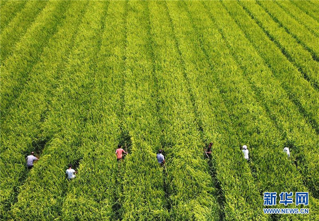 農(nóng)民在貴州省岑鞏縣國家級雜交水稻制種基地利用竹竿對雜交水稻進行人工授粉(8月1日無人機拍攝)。 近年來,貴州省圍繞產(chǎn)業(yè)選擇、培訓農(nóng)民、技術(shù)服務、資金籌措、組織方式、產(chǎn)銷對接、利益聯(lián)結(jié)、基層黨建等“八要素”,通過“減、融、服”創(chuàng)新推進農(nóng)村產(chǎn)業(yè)結(jié)構(gòu)調(diào)整,既帶動了農(nóng)戶增收,也推動了特色產(chǎn)業(yè)做大做強。 新華社記者 楊文斌 攝