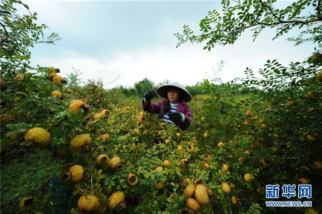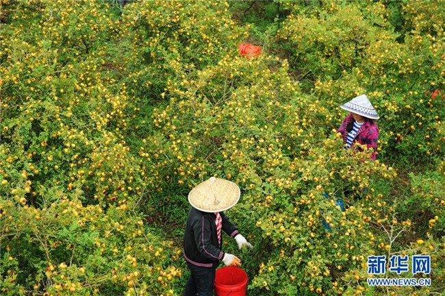 貴州省龍里縣谷腳鎮(zhèn)的農(nóng)民在采摘刺梨鮮果(2018年8月22日攝)。 近年來,貴州省圍繞產(chǎn)業(yè)選擇、培訓農(nóng)民、技術(shù)服務、資金籌措、組織方式、產(chǎn)銷對接、利益聯(lián)結(jié)、基層黨建等“八要素”,通過“減、融、服”創(chuàng)新推進農(nóng)村產(chǎn)業(yè)結(jié)構(gòu)調(diào)整,既帶動了農(nóng)戶增收,也推動了特色產(chǎn)業(yè)做大做強。 新華社記者 楊文斌 攝