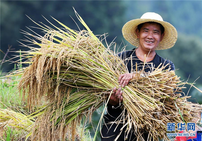 9月17日,貴州省榕江縣計劃鄉(xiāng)計劃村陽開苗寨的村民在收割水稻。 近年來,貴州省圍繞產(chǎn)業(yè)選擇、培訓農(nóng)民、技術(shù)服務、資金籌措、組織方式、產(chǎn)銷對接、利益聯(lián)結(jié)、基層黨建等“八要素”,通過“減、融、服”創(chuàng)新推進農(nóng)村產(chǎn)業(yè)結(jié)構(gòu)調(diào)整,既帶動了農(nóng)戶增收,也推動了特色產(chǎn)業(yè)做大做強。 新華社記者 楊文斌 攝