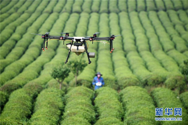 農(nóng)技人員操作植保無人機在貴州省安順市西秀區(qū)明英茶生產(chǎn)基地作業(yè)(5月23日攝)。 近年來,貴州省圍繞產(chǎn)業(yè)選擇、培訓農(nóng)民、技術(shù)服務、資金籌措、組織方式、產(chǎn)銷對接、利益聯(lián)結(jié)、基層黨建等“八要素”,通過“減、融、服”創(chuàng)新推進農(nóng)村產(chǎn)業(yè)結(jié)構(gòu)調(diào)整,既帶動了農(nóng)戶增收,也推動了特色產(chǎn)業(yè)做大做強。 新華社記者 楊文斌 攝