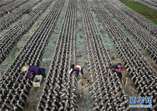農(nóng)民在貴州省銅仁市萬山區(qū)敖寨鄉(xiāng)中華山村的食用菌基地里采摘木耳(2018年10月29日無人機拍攝)。 近年來,貴州省圍繞產(chǎn)業(yè)選擇、培訓農(nóng)民、技術(shù)服務、資金籌措、組織方式、產(chǎn)銷對接、利益聯(lián)結(jié)、基層黨建等“八要素”,通過“減、融、服”創(chuàng)新推進農(nóng)村產(chǎn)業(yè)結(jié)構(gòu)調(diào)整,既帶動了農(nóng)戶增收,也推動了特色產(chǎn)業(yè)做大做強。 新華社記者 楊文斌 攝
