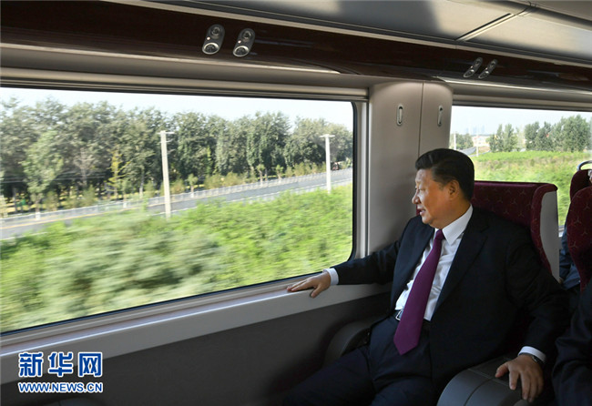 9月25日上午,北京大興國際機(jī)場投運(yùn)儀式在北京舉行。中共中央總書記、國家主席、中央軍委主席習(xí)近平出席儀式,宣布機(jī)場正式投運(yùn)并巡覽航站樓。這是習(xí)近平乘坐軌道列車前往北京大興國際機(jī)場。 新華社記者 謝環(huán)馳 攝