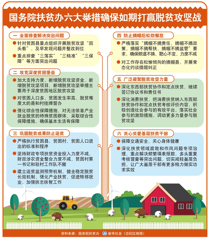 距離2020年底還剩400多天,國(guó)務(wù)院扶貧辦號(hào)召扶貧戰(zhàn)線不忘初心、牢記使命,堅(jiān)定必勝信心,發(fā)揮脫貧攻堅(jiān)專責(zé)部門主力軍作用,咬定目標(biāo),一鼓作氣,務(wù)求全勝。這六方面舉措包括: