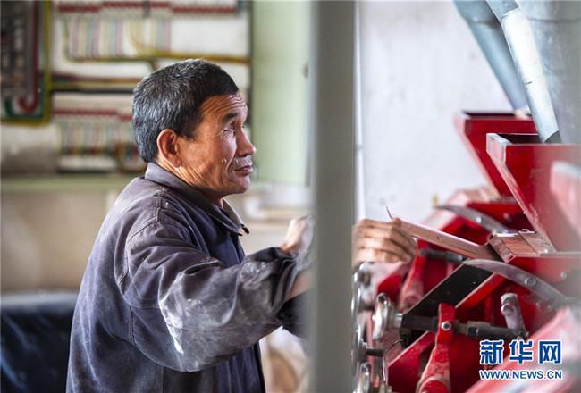馬騰俊在操控電動磨面機(jī)(10月25日攝)新華社發(fā)(楊植森 攝)