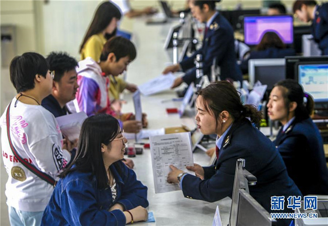 在河北省饒陽(yáng)縣涉稅分中心,窗口工作人員為民營(yíng)企業(yè)家講解簡(jiǎn)便納稅流程(5月6日攝)。新華社記者 李曉果 攝