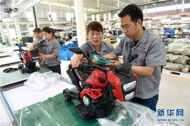 河北省邢臺(tái)經(jīng)濟(jì)開(kāi)發(fā)區(qū)一家民營(yíng)玩具生產(chǎn)企業(yè)的工人對(duì)產(chǎn)品進(jìn)行出廠檢測(cè)(5月29日攝)。新華社記者 朱旭東 攝