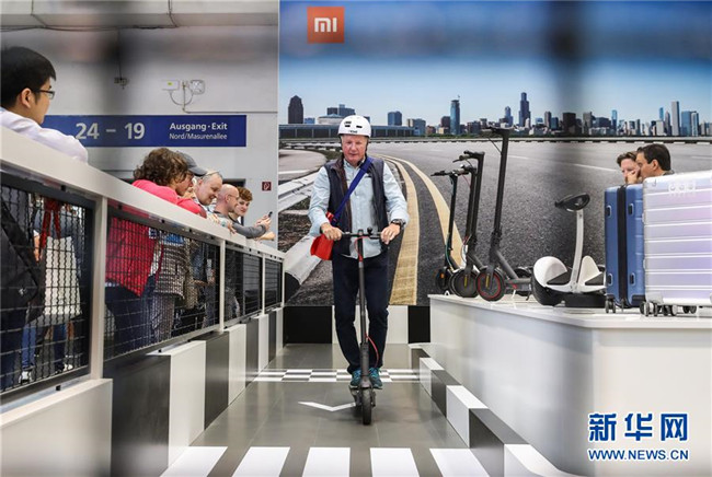 在德國(guó)首都柏林舉辦的第59屆柏林國(guó)際消費(fèi)電子展上,一名參觀者在小米公司展區(qū)體驗(yàn)電動(dòng)滑板車(chē)(9月6日攝)。新華社記者單宇琦攝