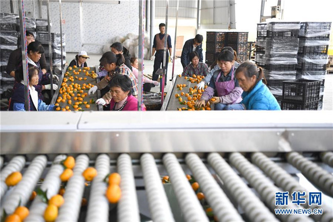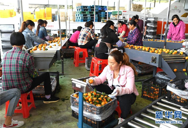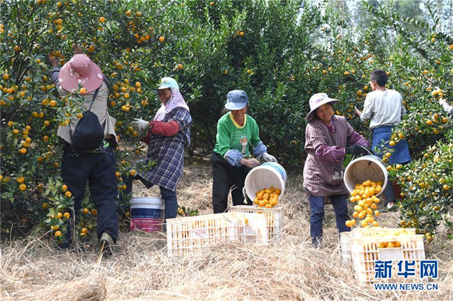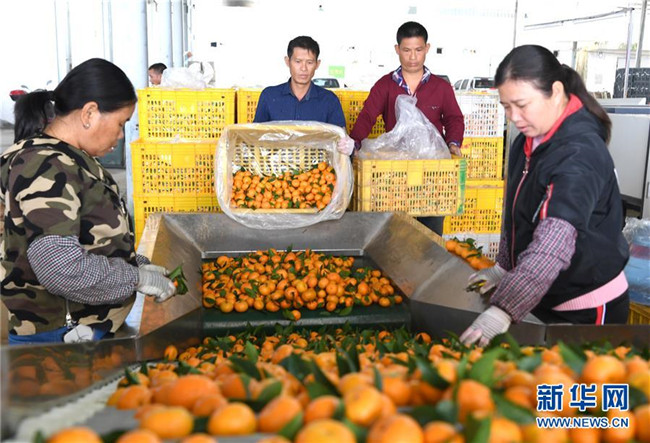 時(shí)下正是廣西鹿寨縣平山鎮(zhèn)數(shù)萬(wàn)畝柑桔成熟上市的季節(jié)。據(jù)悉,2018年平山鎮(zhèn)柑桔產(chǎn)值3.29億元,隨著當(dāng)?shù)馗探鄯N植面積不斷擴(kuò)大,柑桔產(chǎn)業(yè)成為村民脫貧致富的重要產(chǎn)業(yè)。 新華社記者 周華 攝