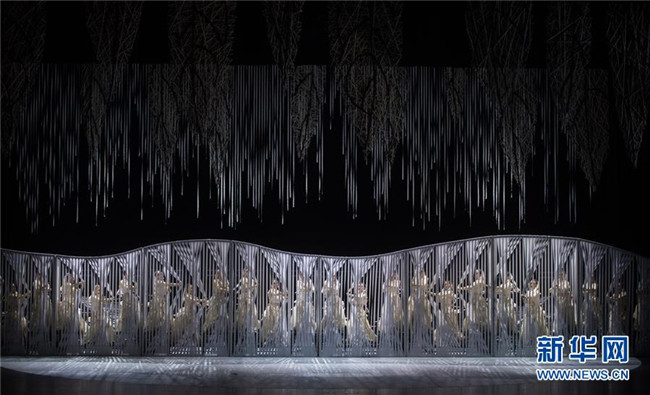 演員在音樂(lè)舞劇《云繡彝裳》第五章節(jié)“絲路云裳”中表演(11月15日攝)。新華社記者胡超攝