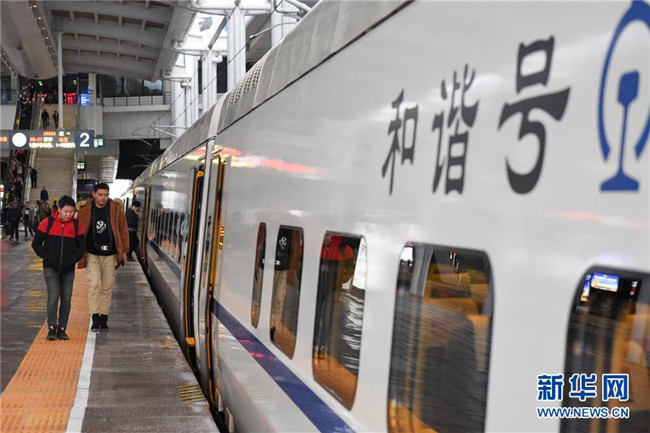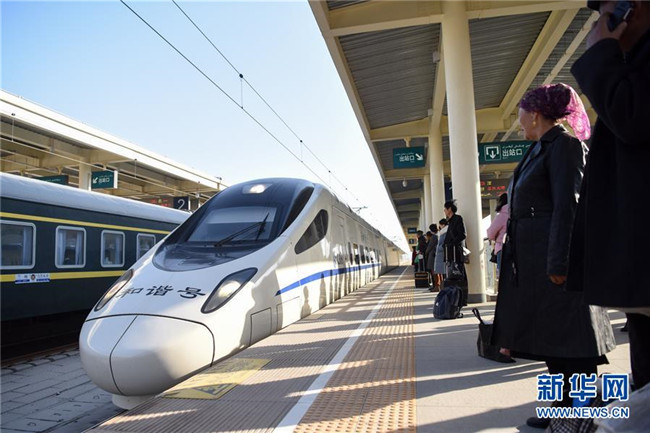 11月16日,在烏魯木齊站,乘客準(zhǔn)備登上由烏魯木齊開往哈密的D8804次動(dòng)車組列車。新華社記者 丁磊 攝