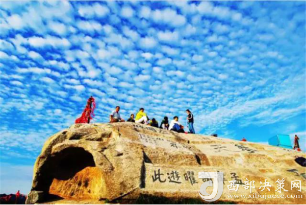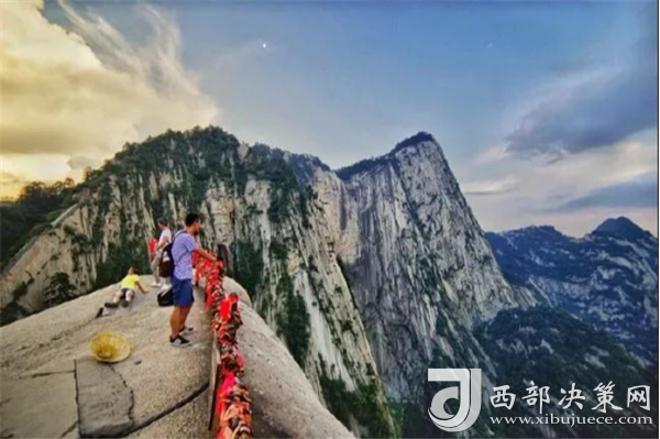 又因峰巔有巨石形狀好似蓮花瓣,古代文人多稱其為蓮花峰、芙蓉峰。西峰為一塊完整巨石,渾然天成。西北絕崖千丈,似刀削鋸截,其陡峭巍峨、陽剛挺拔之勢(shì)是華山山形之代表,因此古人常把華山叫蓮花山。西峰南崖有山脊與南峰相連,脊長300余米,石色蒼黛,形態(tài)好像一條屈縮的巨龍,人稱為屈嶺,也稱小蒼龍嶺,是華山著名的險(xiǎn)道之一。