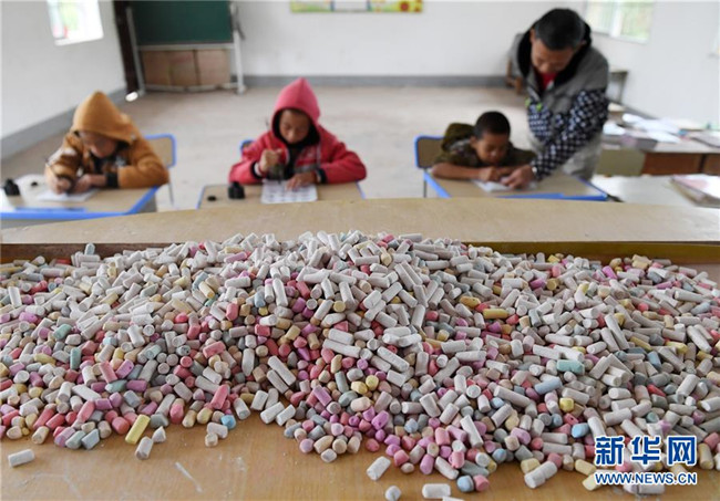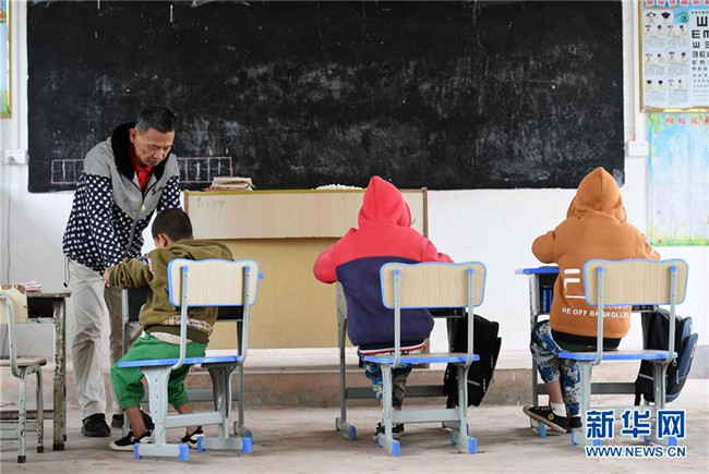 11月19日,在廣西上思縣那琴鄉(xiāng)中心小學(xué)逢通村教學(xué)點,梁志雄給學(xué)生上課。新華社記者陸波岸攝