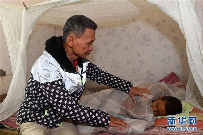 11月19日,在廣西上思縣那琴鄉(xiāng)中心小學(xué)逢通村教學(xué)點,梁志雄在照顧一名學(xué)生午休。新華社記者陸波岸攝