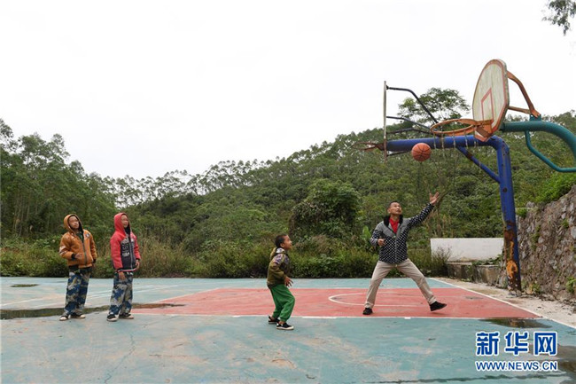 11月19日,在廣西上思縣那琴鄉(xiāng)中心小學(xué)逢通村教學(xué)點,梁志雄教學(xué)生打籃球。新華社記者陸波岸攝