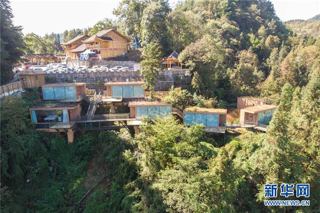 這是湖南省湘西土家族苗族自治州花垣縣十八洞村的一處民宿酒店(10月29日無人機拍攝)。新華社記者 陳思汗 攝