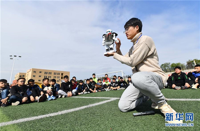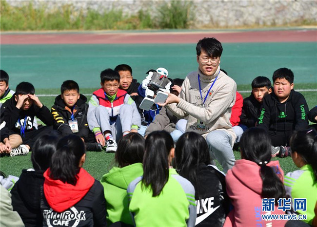 12月5日,在廣西融水苗族自治縣思源實驗學校,譚博天在戶外給學生們上科技課。譚博天是西北工業(yè)大學的在讀碩士研究生,今年9月來到融水苗族自治縣思源實驗學校,擔任班主任。 新華社記者 黃孝邦 攝