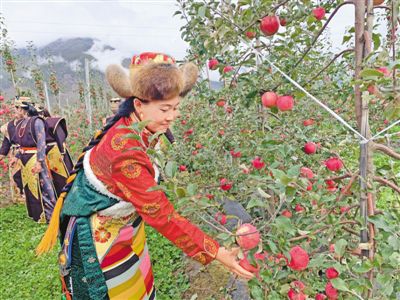 圖為林巴村村民在采摘蘋果。本報(bào)記者 張猛 史金茹 攝
