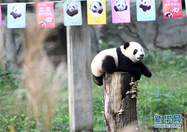 12月22日,重慶動物園1只半歲的大熊貓在戶外活動。當日,重慶動物園為4只大熊貓寶寶“雙雙”“重重”“喜喜”“慶慶”舉行半歲生日慶祝活動。4只半歲大熊貓在飼養(yǎng)員的照料下,在熊貓館運動場內玩耍、嬉戲,與市民游客一同過冬至。新華社記者唐奕攝
