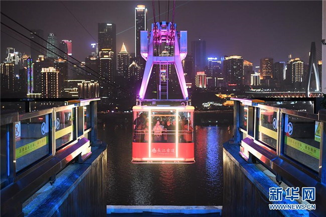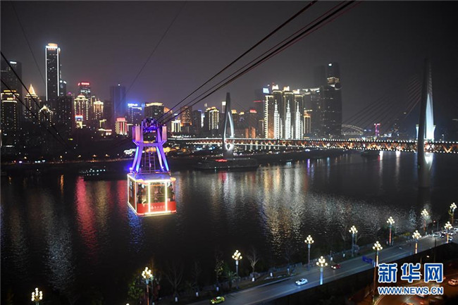 12月23日,“長江索道”在重慶夜空中運(yùn)行。新華社記者 唐奕 攝