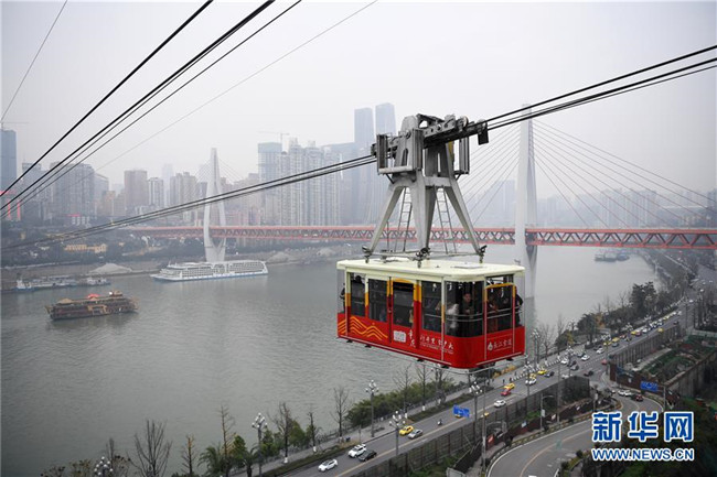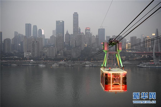 12月23日,“長江索道”在重慶上空運(yùn)行。 新華社記者 唐奕 攝