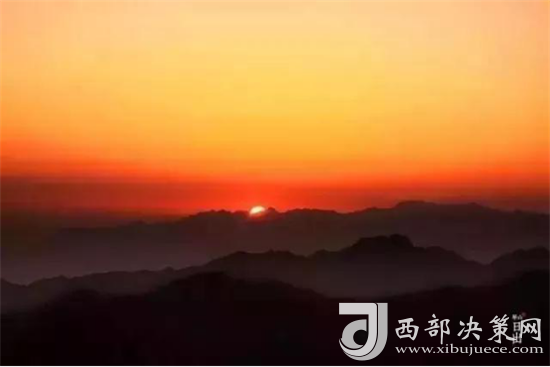 是時,但見夜幕自東方悄然隱退,晨曦初露,漸漸霞光瑰麗,云源奔涌。瞬間,一輪火球噴薄而出,繼而光芒四射,氣象萬千,整個世界大放光明,游人身心為之一振。待云霧散盡,蒼松翠柏,則更加清麗悅目,美妙神奇。故而,游名山者必登華山,登華山者必觀日。華山日出亦被列為華山自然風(fēng)光中的重要景觀之一。