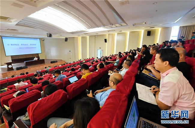 2019年9月18日,福建工程學(xué)院教師代表參加“不忘初心、牢記使命”主題教育報告會。新華社記者 林善傳 攝