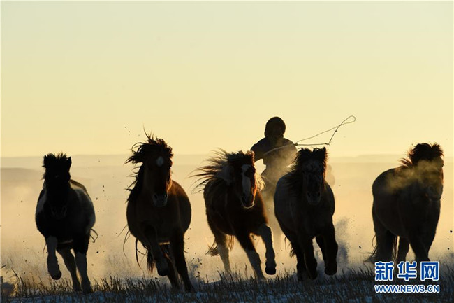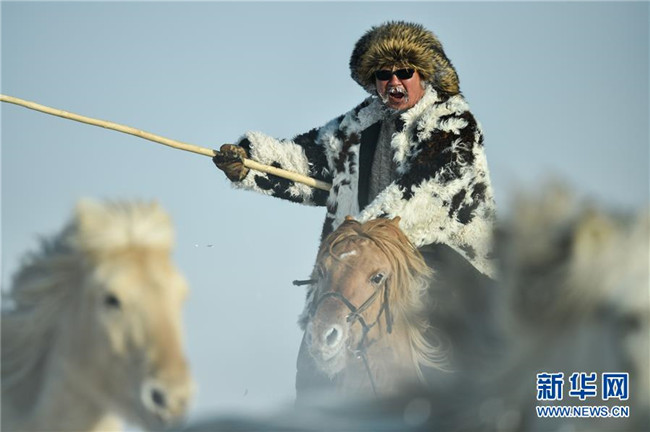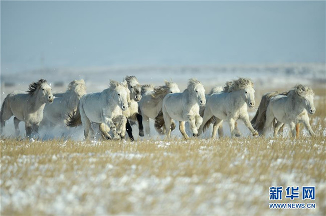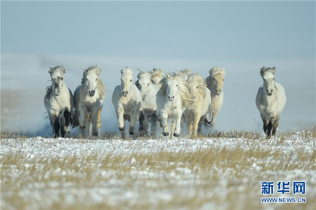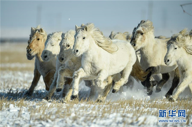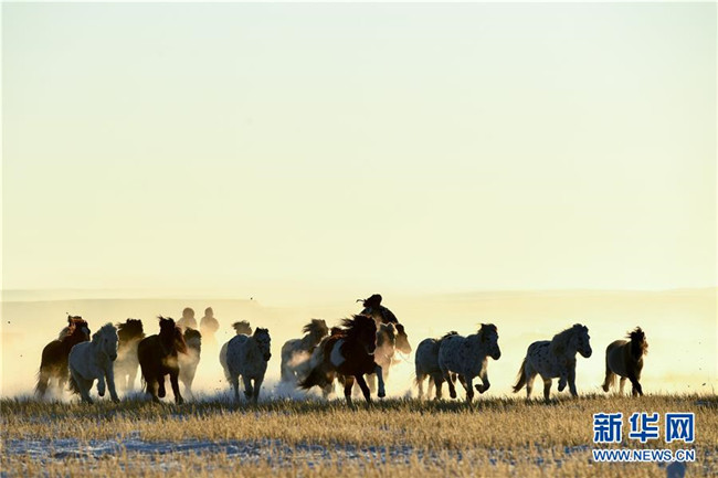 當(dāng)日,內(nèi)蒙古自治區(qū)錫林浩特市鳳凰馬場(chǎng)進(jìn)行了一場(chǎng)馴馬活動(dòng)。騎手們趕著馬群,在白茫茫的草原上奔跑,景象壯觀,吸引了不少游客和攝影愛好者前來觀賞。 新華社記者 劉磊 攝