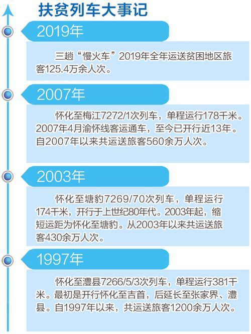 “慢火車”幾十年如一日運行在湘渝黔武陵山區(qū),這里沿線聚居著苗、侗、土家族等少數(shù)民族,經(jīng)濟欠發(fā)達,貧困程度深,是國家脫貧攻堅的重點區(qū)域。為方便沿線百姓人、貨往來方便,列車允許乘客肩挑背扛大量山貨乘車,更有不少學子靠乘坐慢火車,走完求學之路。扶貧“慢火車”已成為山區(qū)困難群眾致富奔小康的希望之路。