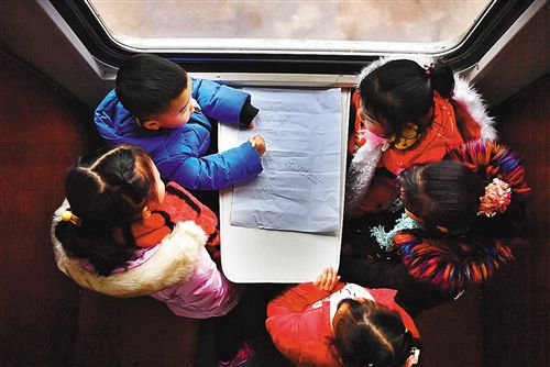 7269次列車上,幾位小學生在車廂里做作業(yè)。綠皮“慢火車”穿行在武陵山深處,為沿線百姓提供出行服務的同時,也承擔著學生上下學“校車”的責任。
