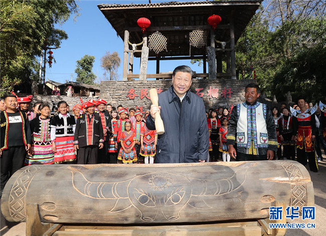 春節(jié)前夕,中共中央總書(shū)記、國(guó)家主席、中央軍委主席習(xí)近平赴云南考察,看望慰問(wèn)基層干部群眾。這是1月19日下午,習(xí)近平來(lái)到騰沖市清水鄉(xiāng)三家村中寨司莫拉佤族村,向大家送上新春祝福。 新華社記者 鞠鵬 攝